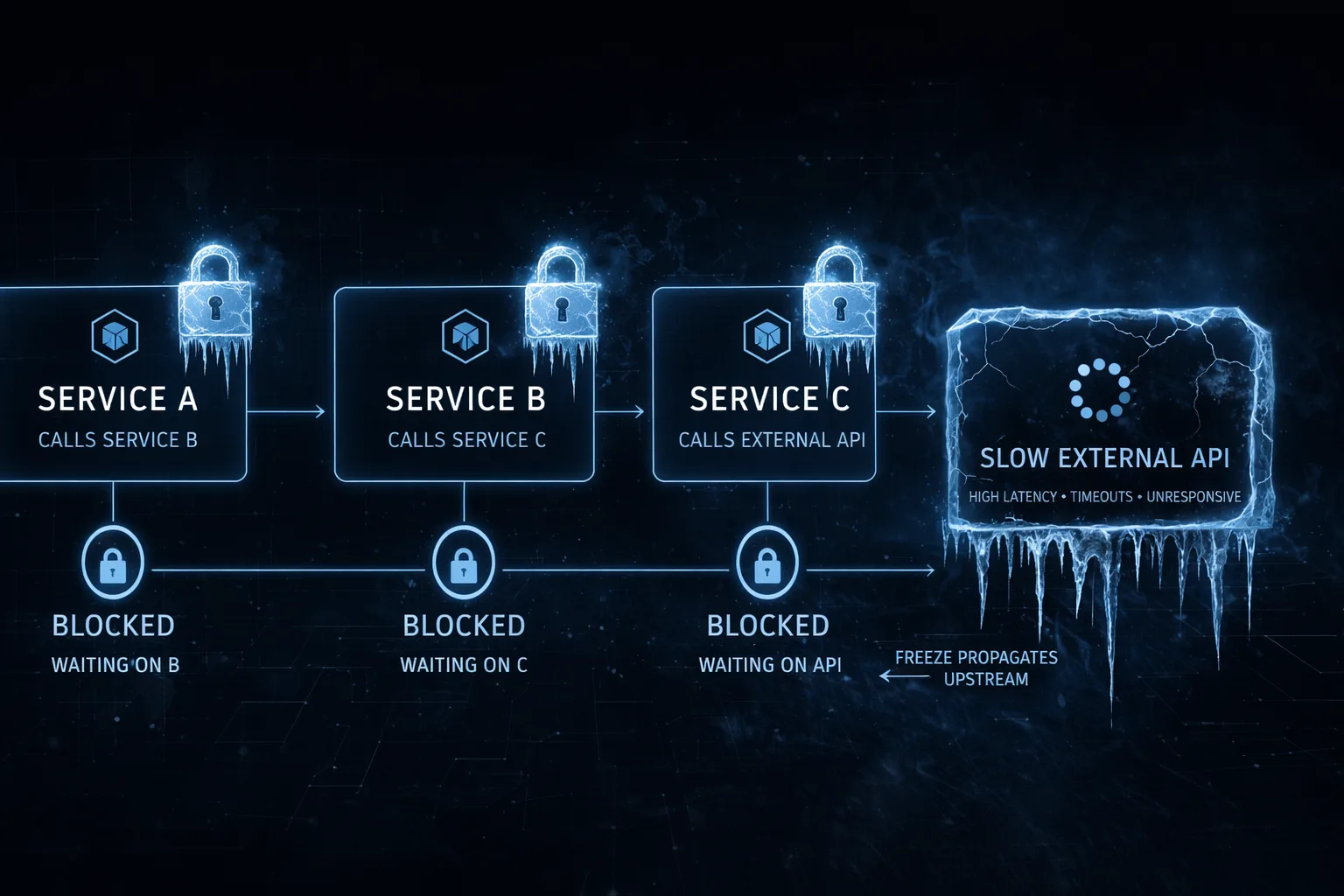 Tek bir yavaş servis, tüm servis zincirini dondurabilir. Buna Cascading Failure denir.